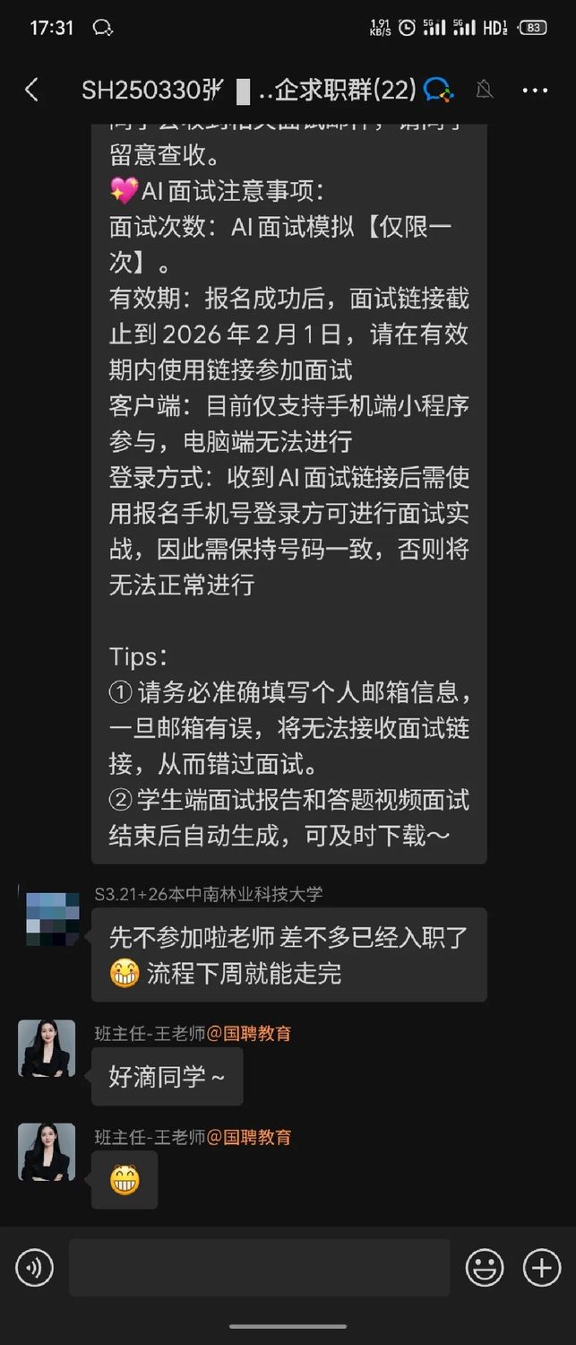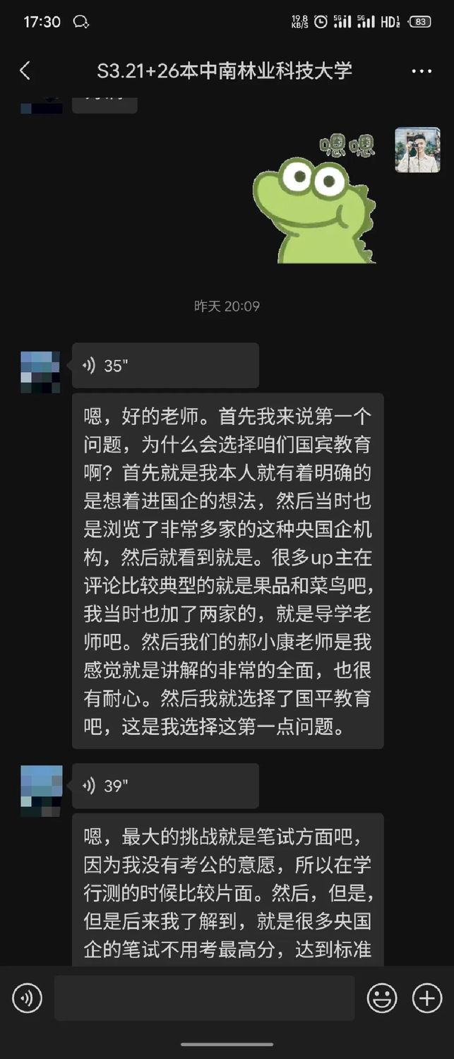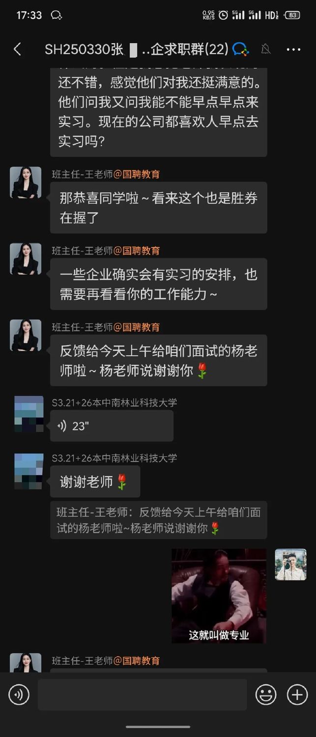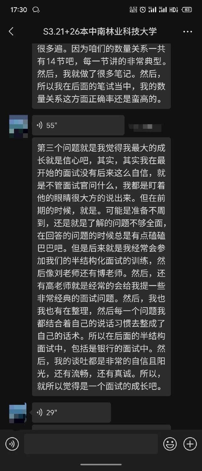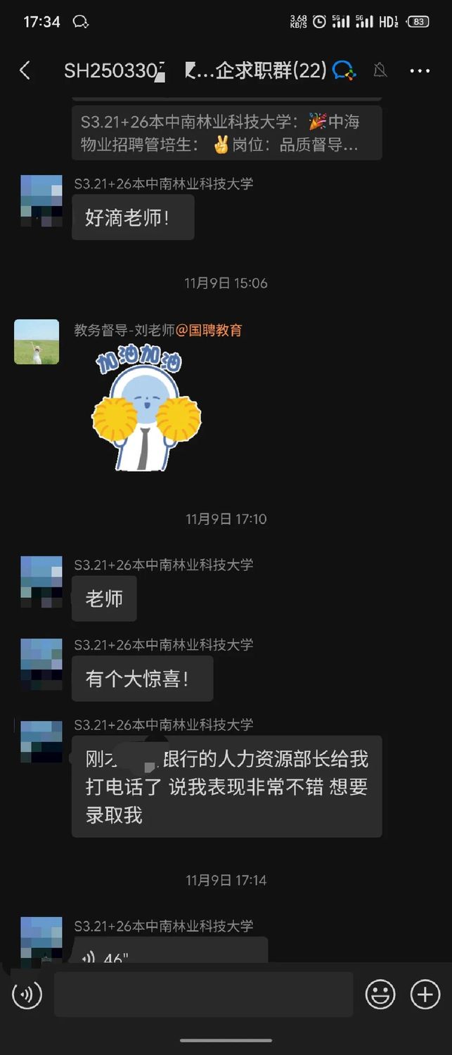 恭喜张同学在国聘教育的专业指导下,成功斩获心仪的Offer!发表时间:2025-11-21 14:14 大家好!欢迎来到本期的《国聘教育学员说》! 在求职的道路上,每一个闪光的Offer背后,都有一段不为人知的奋斗故事。今天,我们非常荣幸地邀请到了成功斩获某股份制银行Offer的张同学,分享他从报名国聘教育到成功入职银行的心路历程。让我们一起倾听他的故事,汲取前行的力量。 学员采访 学员资料介绍 姓名:张同学 学校:中南林业科技大学 学历:26届本科 专业:管理类专业 已拿到某股份制银行Offer @PinPin 当初是什么契机,让您选择报名国聘教育辅导? @张同学 首先就是我本人就有着明确的是想着进国企的想法,然后当时也是浏览了非常多家的这种央国企机构,就看到很多up主在评论比较,典型的就是国聘教育和另一家机构吧,我当时也加了两家的就是导学老师吧(前期规划老师)。然后我们的郝晓康老师让我感觉讲解的非常全面的,也很有耐心,然后我就选择了国聘教育。 @PinPin 在学习和求职过程中,您遇到的最大挑战是什么,如何在国聘教育的帮助下克服它的? @张同学 最大的挑战就是笔试方面吧,因为我没有考公的意愿,所以在学行测的时候比较片面。但是后来我了解到,就是很多央国企的笔试不用考最高分,达到标准就行。然后我就选择了重点抓其他同学最不爱的数量关系,我就很仔细的看了我们的笔试课程,将数量关系的每一节课看了很多遍。因为咱们的数量关系一共有14节吧,每一节讲的都非常典型,我就做了很多笔记,我在后面的笔试当中,我的数量关系这方面正确率还是蛮高的。 pinpin:关于行测学习的方法非常好哇,我们找到了主要矛盾,然后最大化的扩大自己的优势,果然优秀的同学都是善于思考、且执行力很强! 同学:是的老师,我就觉得行测这个东西,因为笔试嘛又没有说就是必须前几进,无非就是达到60分或达到50分就可以进了。再加上确定性大于不确定性吧。像数量分析和那个资料分析,都是做了就能拿分的东西,我们可以把重心放在这里多一点。至于言语理解这个东西,其实大多数是靠这种感觉吧。不管你再多刷题再学,感觉没到,你就是做不对。但是数量和资料的话,只要你学了,只要你掌握了这个方法,分数是可以实打实拿到手的。所以我建议就是,如果准备笔试的话,还是要重视数量,因为很多人是没耐心去学数量的,说耽误时间什么的,但其实掌握方法后是可以与竞争对手拉开分数差距的,因为真的参加笔试时会发现时间根本不够,用对方法把该拿的分拿到就可以了。 @PinPin 在整个学习的过程中,您觉得自己最大的变化或成长是什么?(是技能、思维、还是信心?) @张同学 我觉得我最大的成长就是信心吧,其实我在最开始的时候,我的面试没有现在这么自信,现在就是不管面试官问什么,我都可以盯着他的眼睛很大方的说出来,但在前期的时候,可能是准备不周到,或者了解的问题不够全面,在回答的问题的时候总是有点磕磕巴巴。所以后来我经常会参加我们的半结构化面试的模拟训练,然后像刘老师、bo/bu老师(这个需要和教务确认下,学生语音说的)还有高老师,经常会给我提一些非常经典的面试问题。然后,我也有在整理,每一个问题我都结合着自己的说话习惯去整成了自己的话术。所以在后面的半结构面试中,包括银行的面试,我的谈吐都是非常的自信且阳光,还有流畅和真诚。所以觉得是一个面试信心的成长比较大。 @PinPin 现在的您,如何看待自己当初选择来这里学习的决定? @张同学 我觉得我算是非常庆幸自己可以报这个班,庆幸自己来到了国聘教育吧。因为有一说一确实给了很多帮助,比如说一些困扰啊。还有就是一些相关资料啊,还有一些学习上的督促等等。其实,我的笔试到现在为止没有任何一科是挂过的。就是得益于咱们老师就是每个月会有两次的笔试训练嘛,总是会督促着我去完成。 @PinPin 回顾在国聘教育学习的这段经历,您会给那些和您当初一样迷茫的学弟学妹们什么建议? @张同学 第一点的话,就是我觉得既然下一届的学弟学妹回来咨询,说明或多或少对找工作是有意向的,我就建议他们就是不管是什么问题,不管是什么岗位,什么类型的工作,多去跟咱们的老师去交流一下,看看这个工作招什么专业,招什么学校,招什么学历的层次,多去了解一下,就是要多问吧,打破信息差嘛,不问不去搜这个信息差是打不破的,不能指望着老师主动去告诉你说说什么什么什么,因为每个人的关注点是不一样的,更多的是需要自己去问吧,然后第二点的话,要培养一个自己的核心竞争力。这个核心竞争力不是说有多么多么持久,但一定要有一点的过人之处。就比如说,我的核心竞争力,就是在我秋招之前,在我大四之前,我有过三段实习经历,所以建议大家也要培养一个自己的核心竞争力。 另外,毕业前找工作迷茫是正常的,因为我的本科专业不是特别的好,没有什么就业前景。然后我当时想着,我可能到时候毕业就只能找极个别的国企工作吧,但是国聘教育确实给我很大的信心,给我推提供了很多的信息差,我看了下截止到现在已经是推了一百五六十个岗位了,我就觉得,这家不行我还有下一家嘛。 第三点建议,我觉得咱们同学要明白自己未来的就业地点在哪里呀。就比如说是想在老家就业呢,还是我想去北京上海就业呢?我建议就是你实习的时候就去你未来想就业的那个地方,去找一