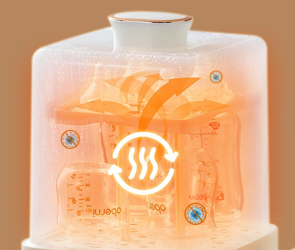 顺便把清洗干净的奶瓶放在左边消毒仓,选好消毒+烘干模式,在你休息的时候机器会对奶瓶完成蒸汽消毒+烘干,确保拿出来使用的时候是完全卫生且干燥的。